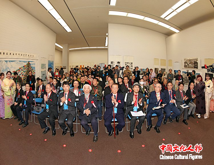 日本前内阁府特命担当大臣、日本众议院议员江崎铁磨,原日展常务理事、日本书艺院理事长、全日本书道联盟副理事长杭迫柏树,中国书法家协会理事、中国美术家协会理事、西泠印社理事容铁,中国文化人物杂志社社长王保胜,日展审査员、日本著名画家藤岛博文,创价学会副会长、富士美术馆事务局局长金子朗,东京中国文化中心主任罗玉泉,东洋书道艺术学会会长、理事长松本啓祐,全日本华侨华人联合会副会长、世界艺术家联盟主席、全日本华侨华人春晩总导演程波,在日中国企业协会会长王家驯,朝日新闻社社长助理、编辑委员会委员、中国局局长坂尻信义,东京都日中友好协会副会长永田哲二等中日两国嘉宾为展览剪彩