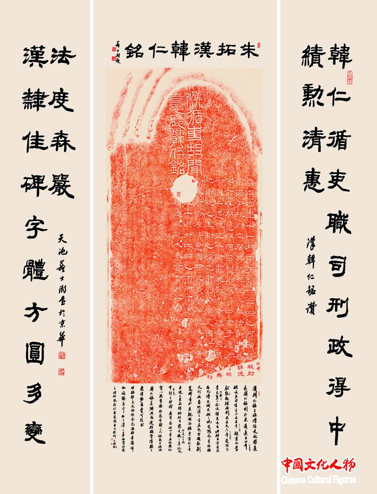 『朱拓韩仁铭及题跋对联』 94cm×238cm 37cm×238cm×2 苏士澍书道作品