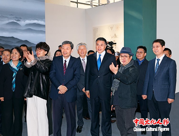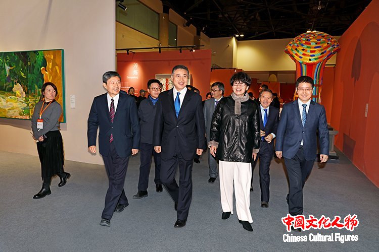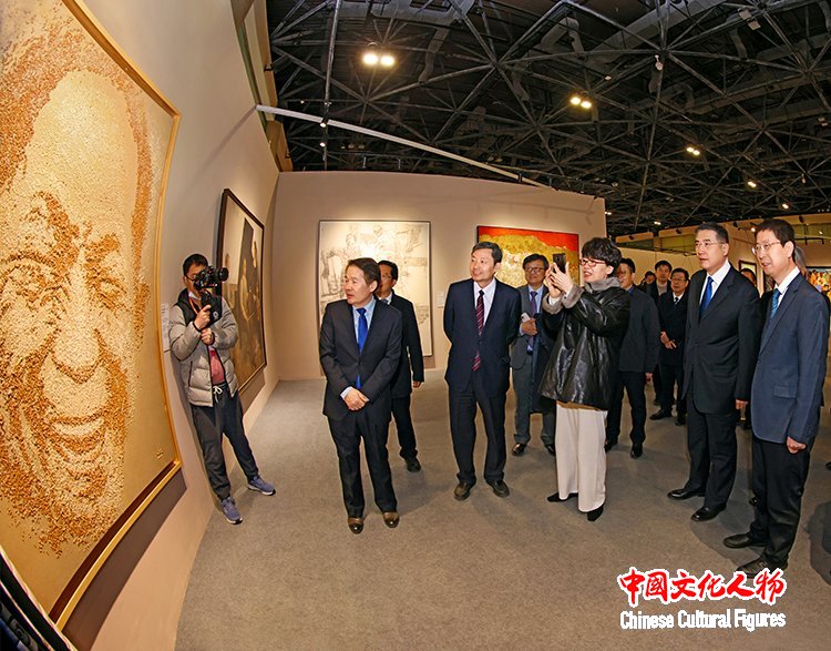 中国文学艺术界联合会党组书记、副主席张政在中国文学艺术界联合会党组成员、副主席诸迪,中共北京市委常委、宣传部部长孙军民,中国美术家协会分党组书记、驻会副主席屈健等人的陪同下参观展览