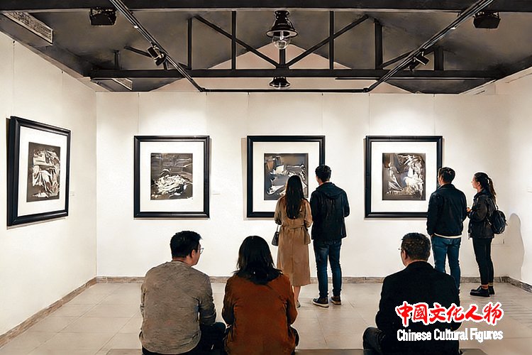 观众在展览现场欣赏李庚创作的水墨系列作品