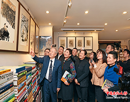 他的脸上身上布满刀痕,但他微笑着望着大海。中国画中国的水墨画有着诗一般的韵律,这是古老的民族艺术在一代一代天才艺术家的继承和发扬中得以升华和创新,我十分高兴借此展览的机会,向德国艺术界以及广大观众们介绍这位中国优秀的艺术家,他的作品在你们眼前展开一个诗一般的世界,但愿你们能引起共鸣。