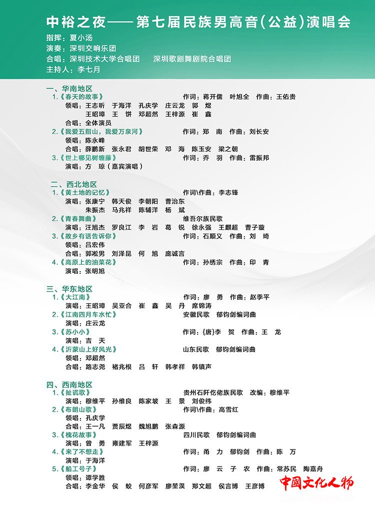 “中裕之夜——第七届民族男高音公益演唱会”节目单
