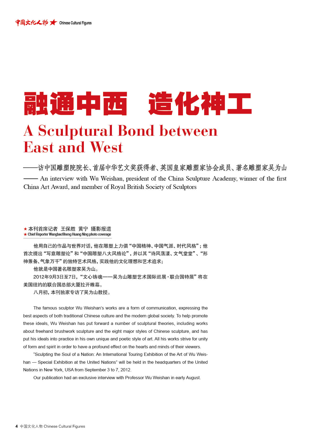 ——访中国雕塑院院长、首届中华艺文奖获得者、英国皇家雕塑家协会成员、著名雕塑家吴为山