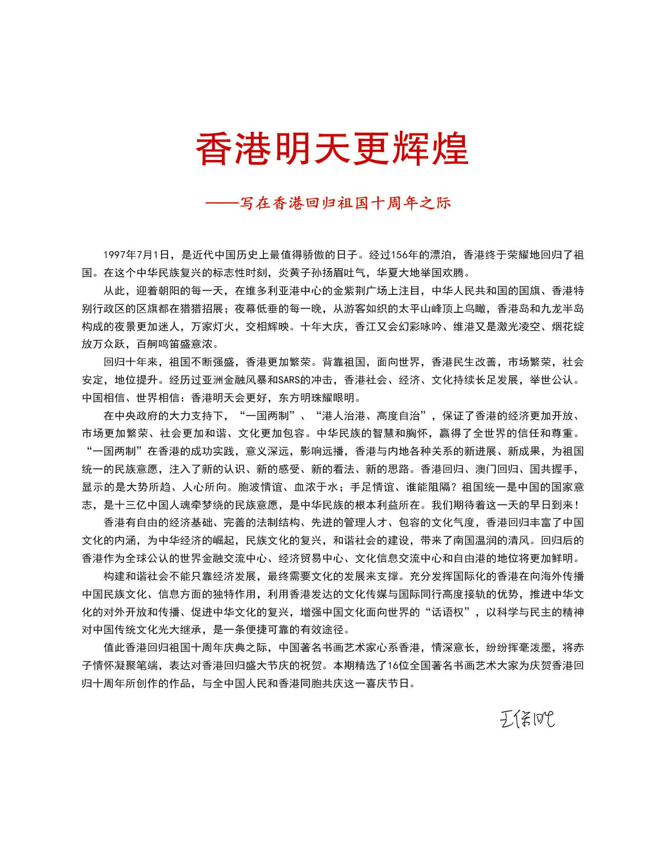 中国书画艺术名家贺香港回归十周年