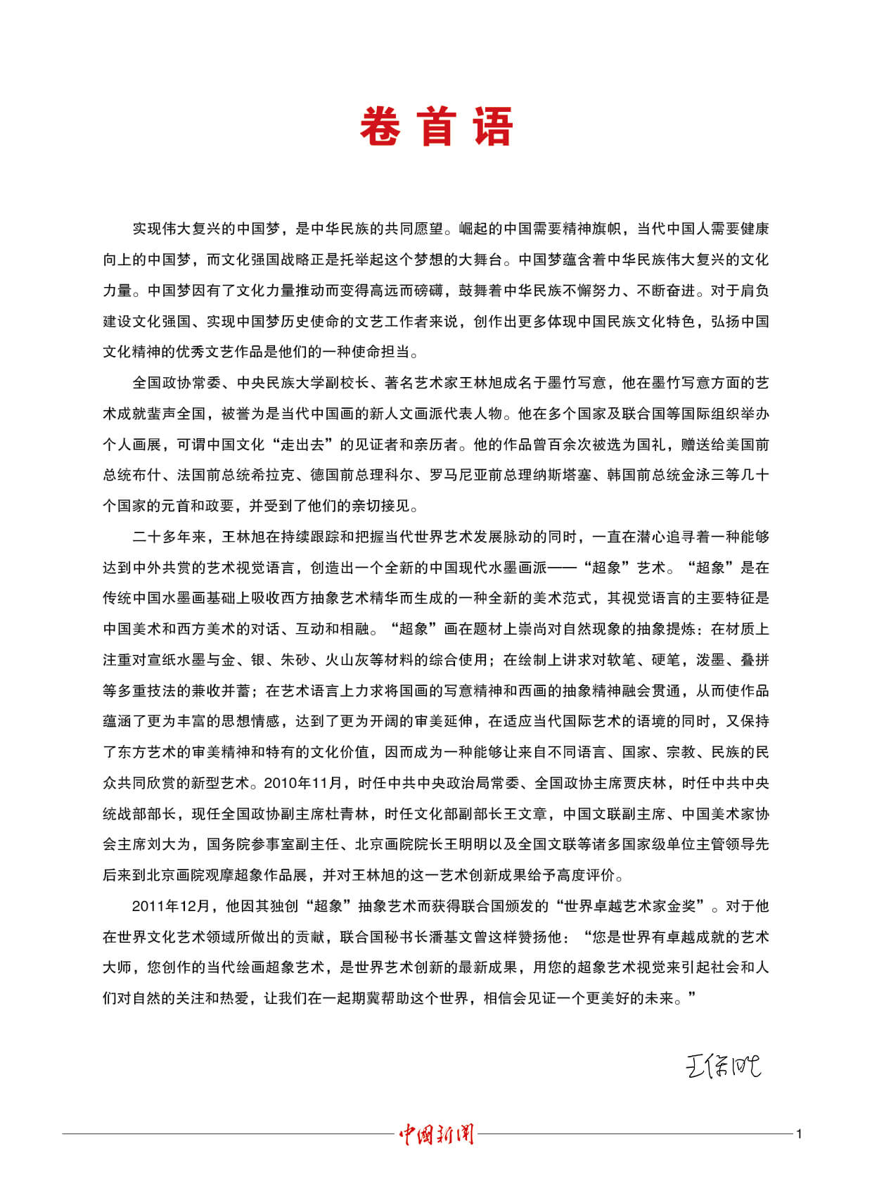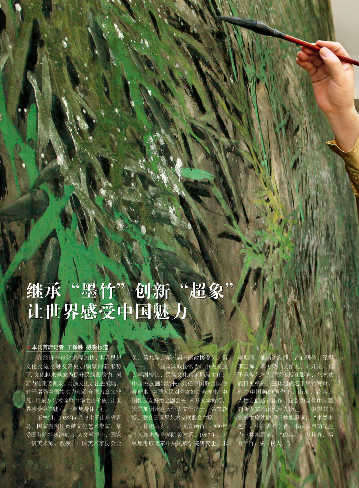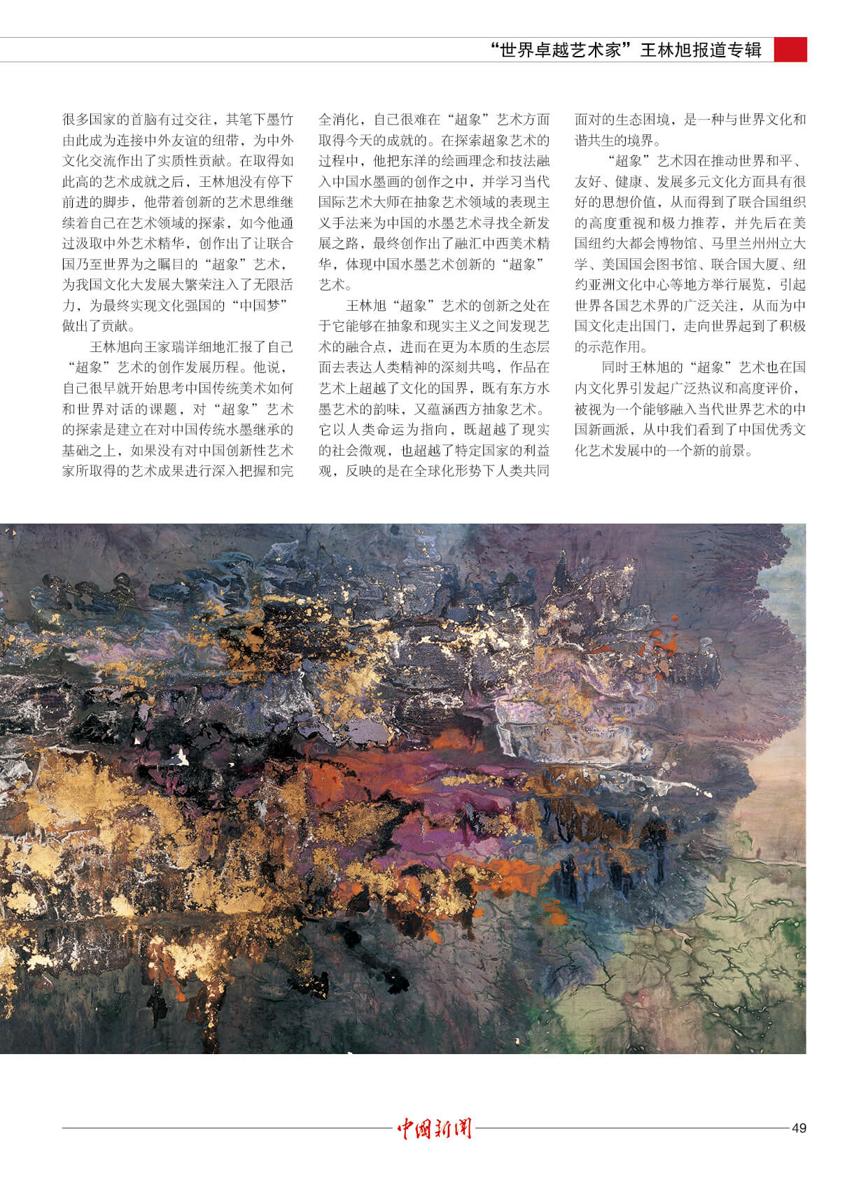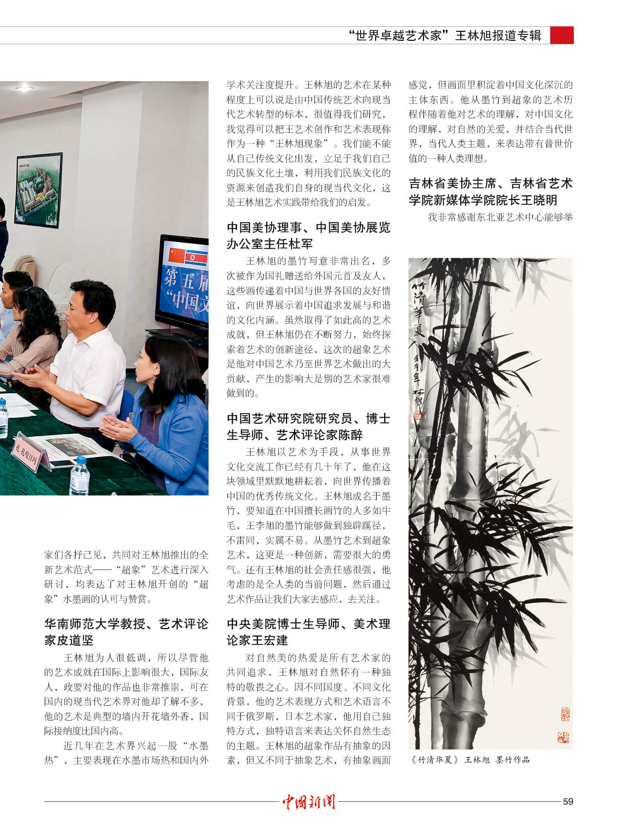 潘基文:王林旭是成就卓越的世界艺术大师。他的“超象”艺术,是当代世界艺术创新的一项新成果,能引起人们对自然的热爱和对社会发展的关注。