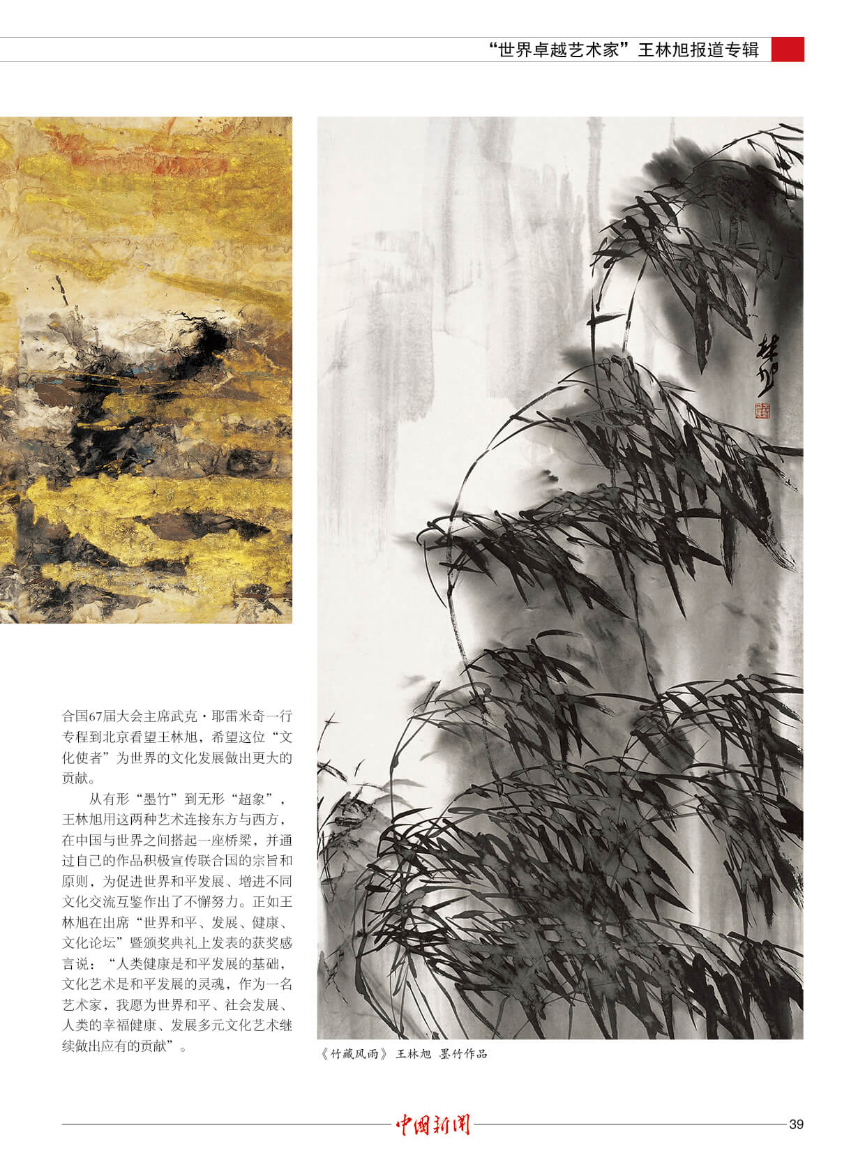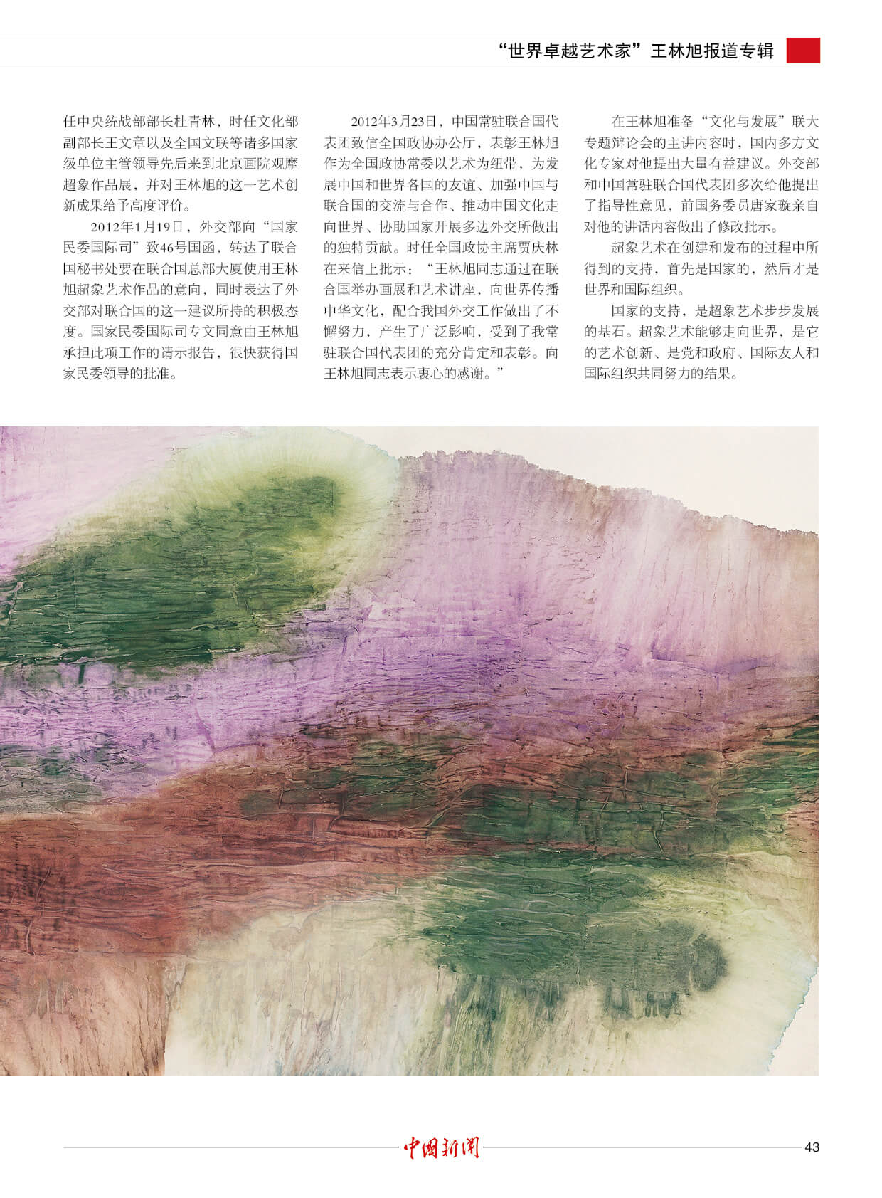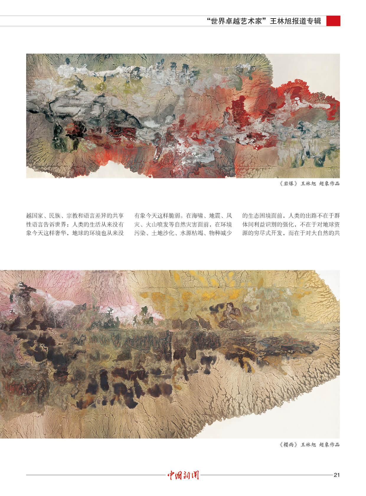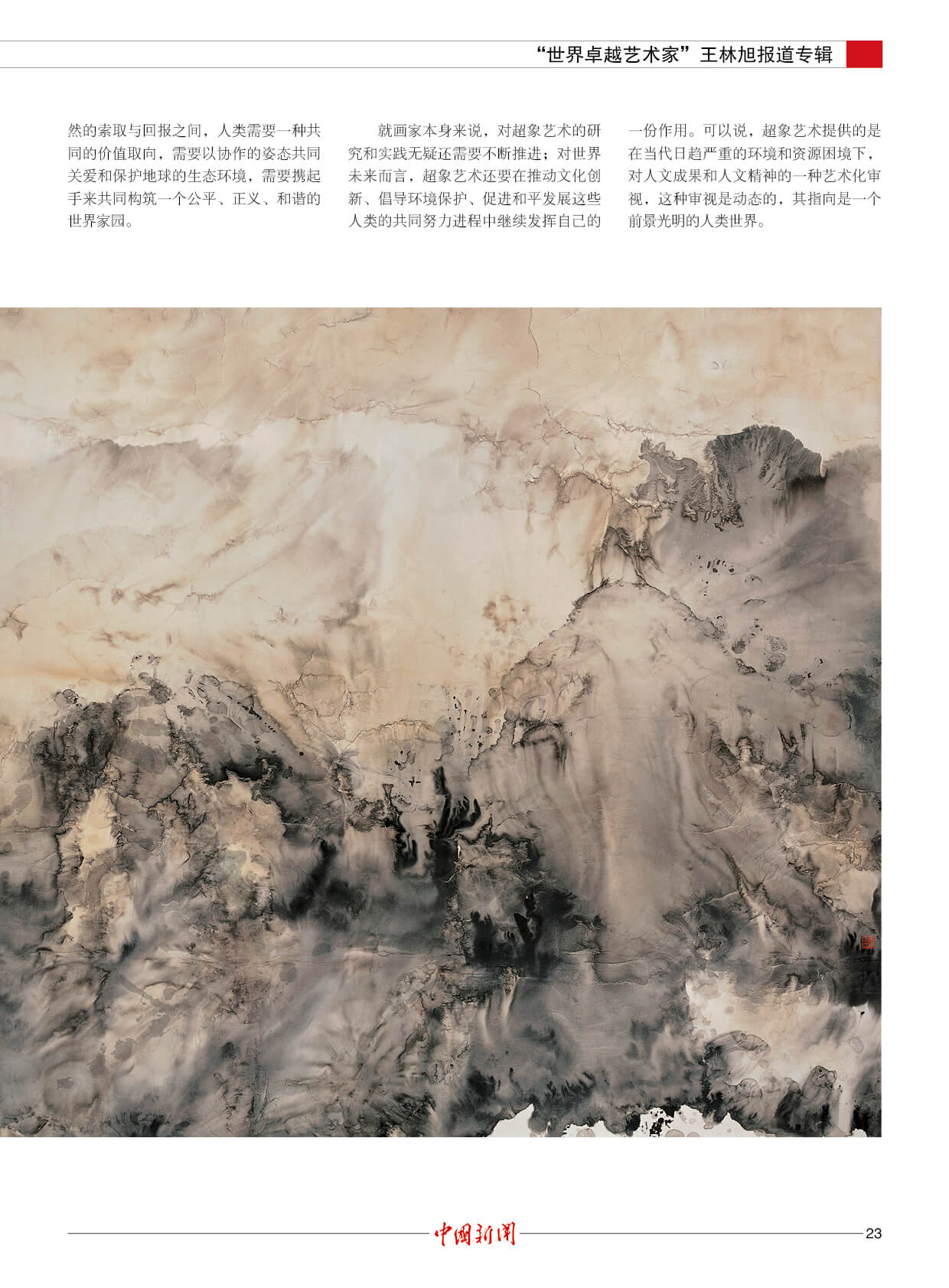 潘基文:王林旭是成就卓越的世界艺术大师。他的“超象”艺术,是当代世界艺术创新的一项新成果,能引起人们对自然的热爱和对社会发展的关注。