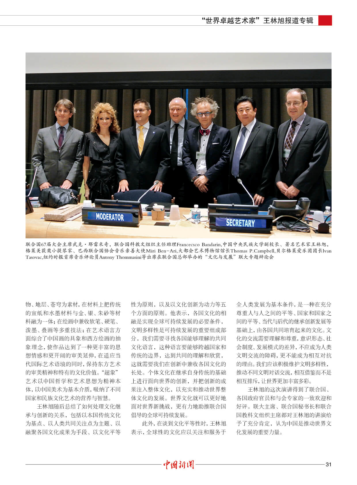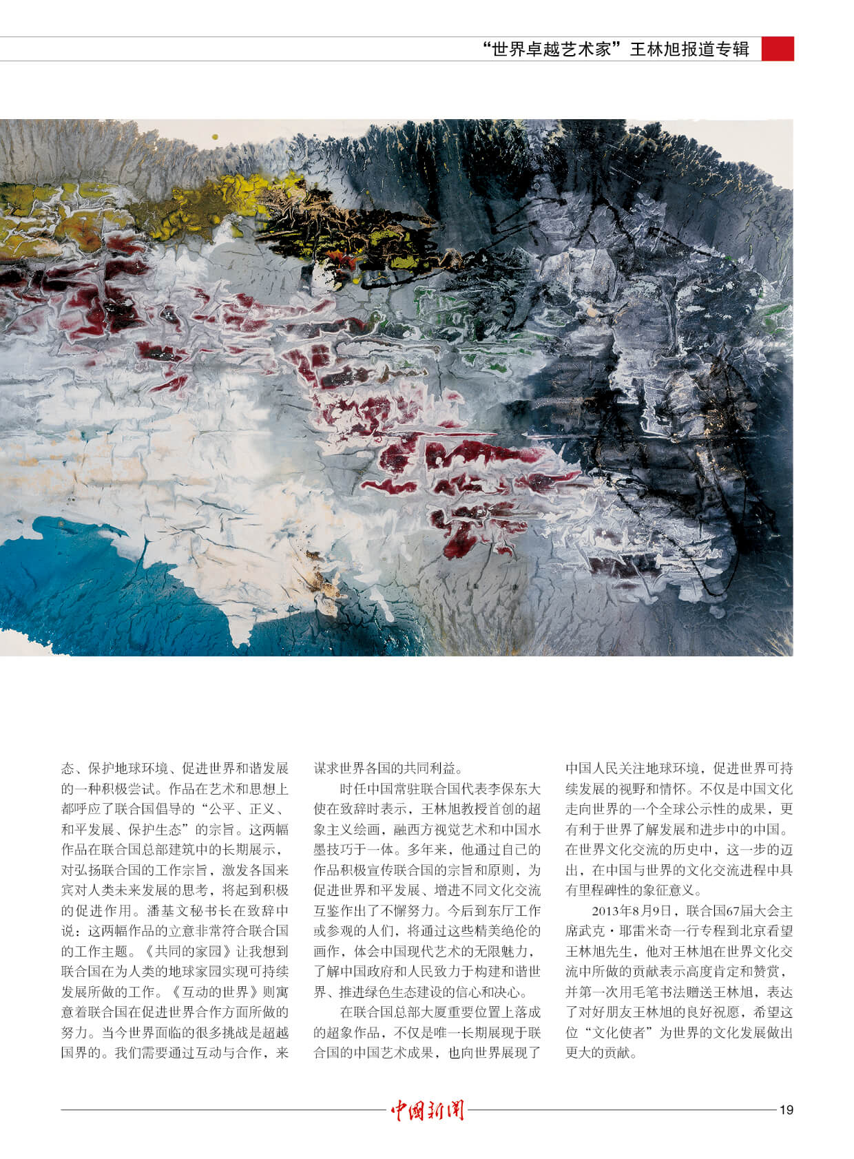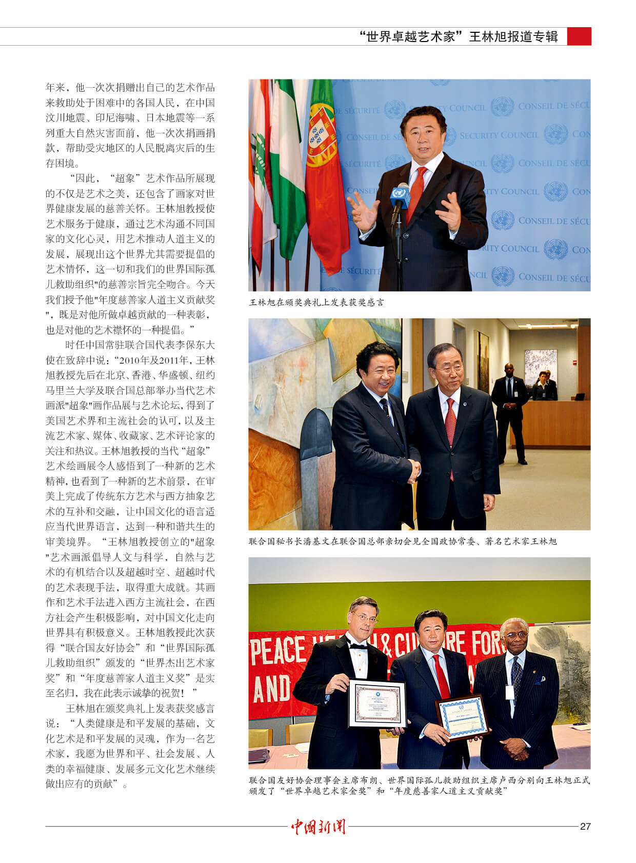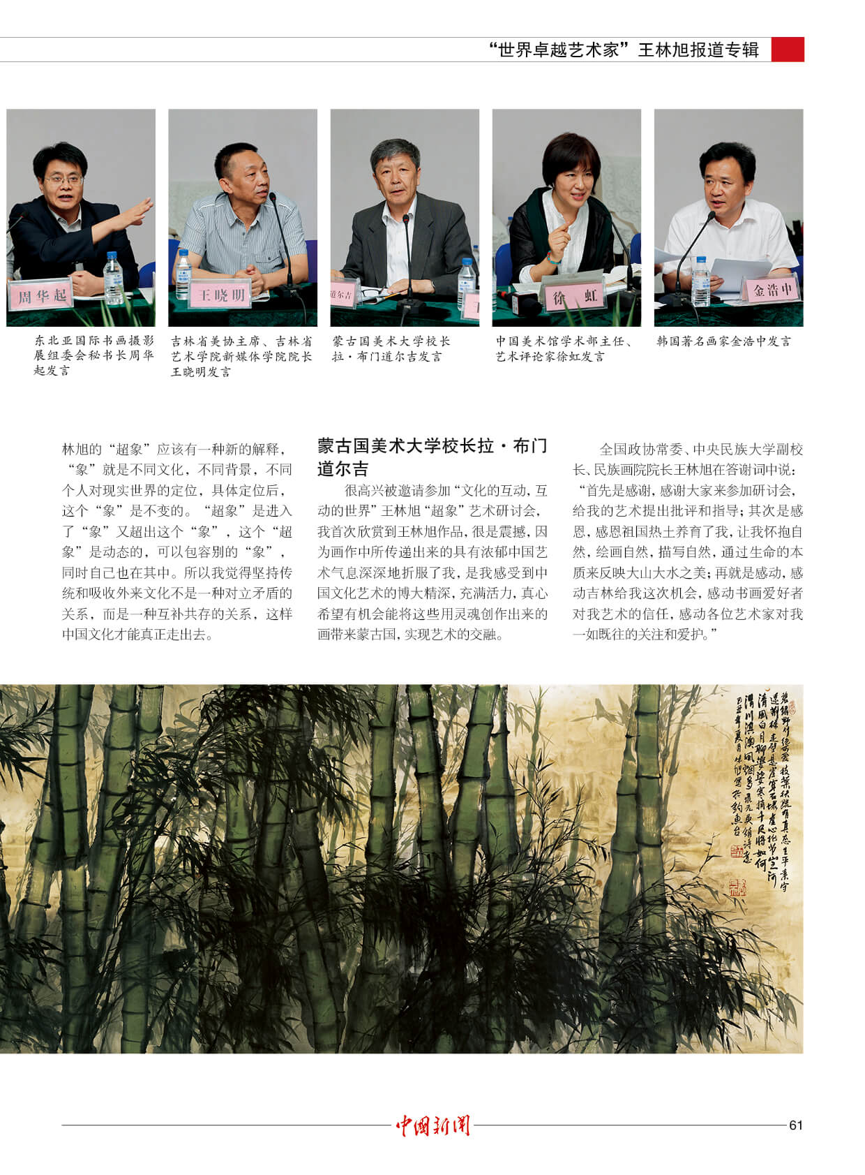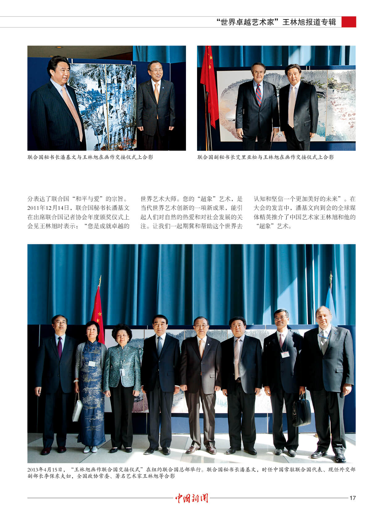 潘基文:王林旭是成就卓越的世界艺术大师。他的“超象”艺术,是当代世界艺术创新的一项新成果,能引起人们对自然的热爱和对社会发展的关注。