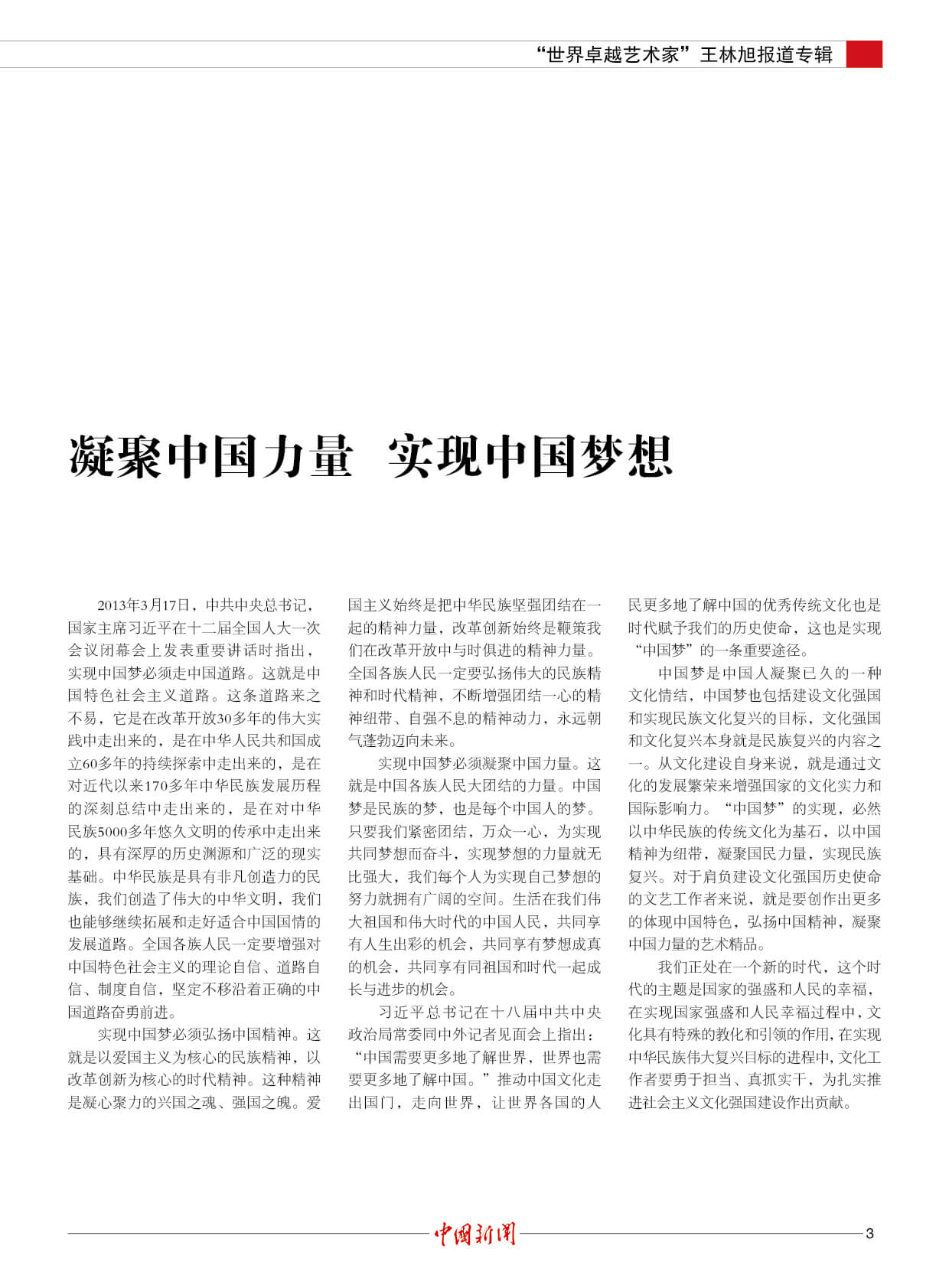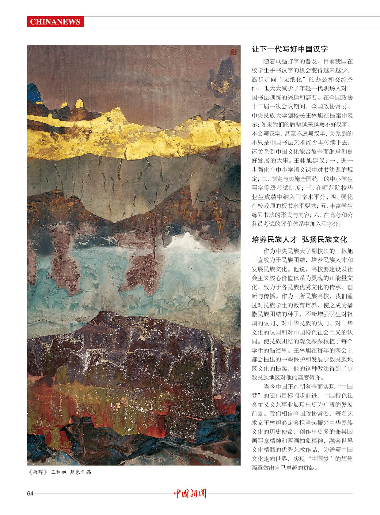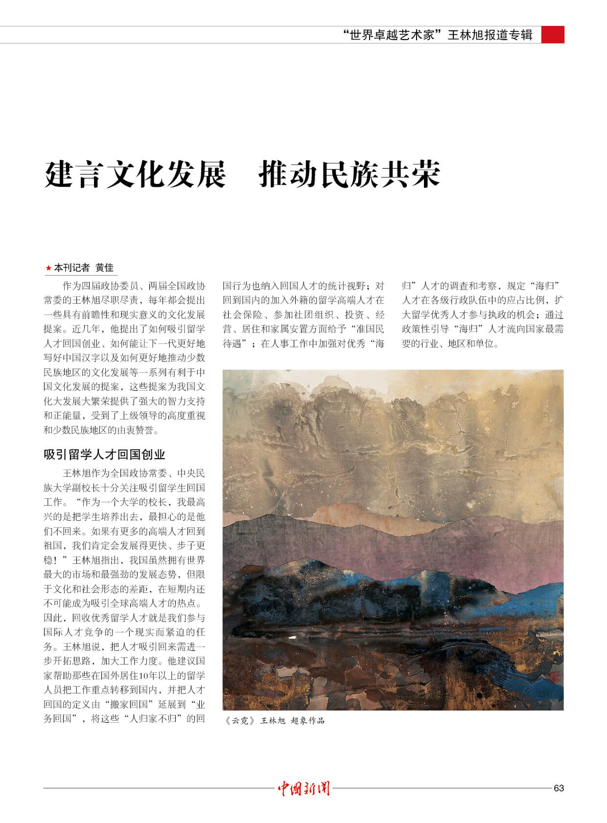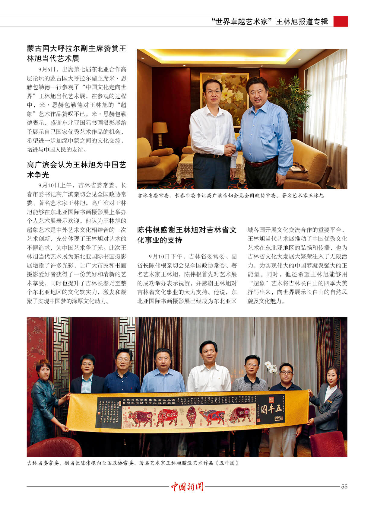 潘基文:王林旭是成就卓越的世界艺术大师。他的“超象”艺术,是当代世界艺术创新的一项新成果,能引起人们对自然的热爱和对社会发展的关注。