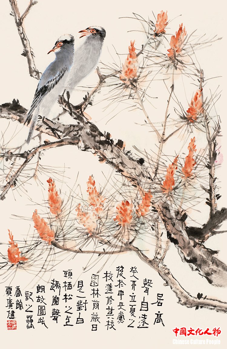 “Standing High, One's Voice Reaches Far” (45×68cm) by Jia Guangjian