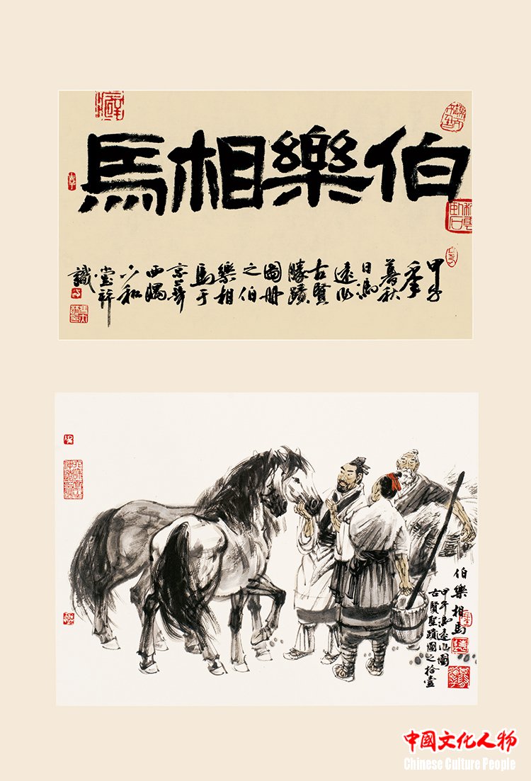 “Bo Le Appraising Horses” (58×82cm) by Feng Yuan