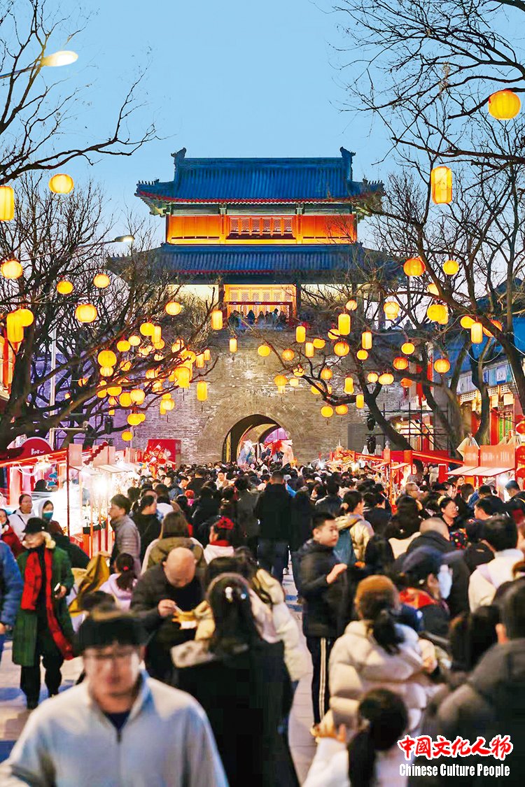 华灯初上,宛平城楼下的街巷热闹非凡,历史的厚重与人间的烟火气在此交融