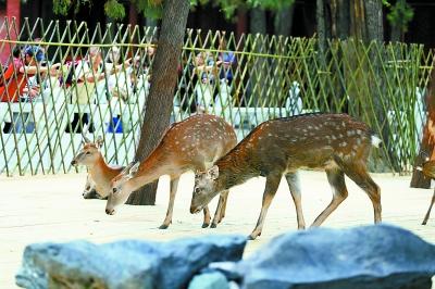 今天上午,记者在故宫慈宁宫花园里看到了9位体态轻盈、优雅的“贵客”。进出“别墅”,竹篱边悠闲吃草、嬉戏,好不惬意。它们是今起开幕的《天禄永昌——故宫藏瑞鹿文物特展》的“特邀嘉宾”。至明年2月底,鹿角椅、青玉衔灵芝卧鹿、鹿头尊等69件与鹿有关的珍贵文物,将在故宫永寿宫同步展出。