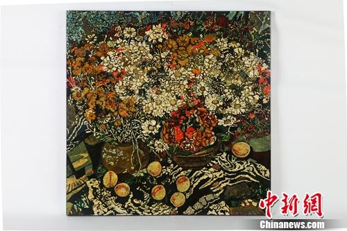 现场展出的作品《花与桃》。