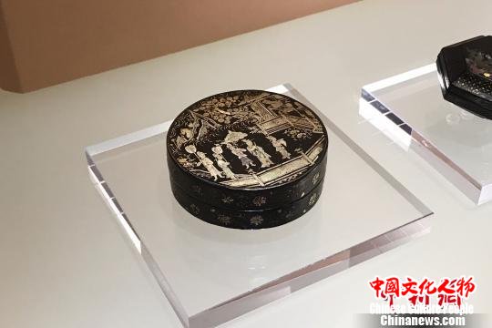 黑漆螺钿人物图圆盒。 王笈 摄