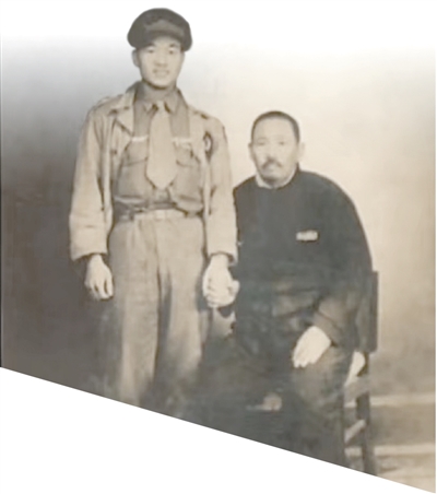 李占瑞穿飞行服与父亲的合影。 李 晶供图