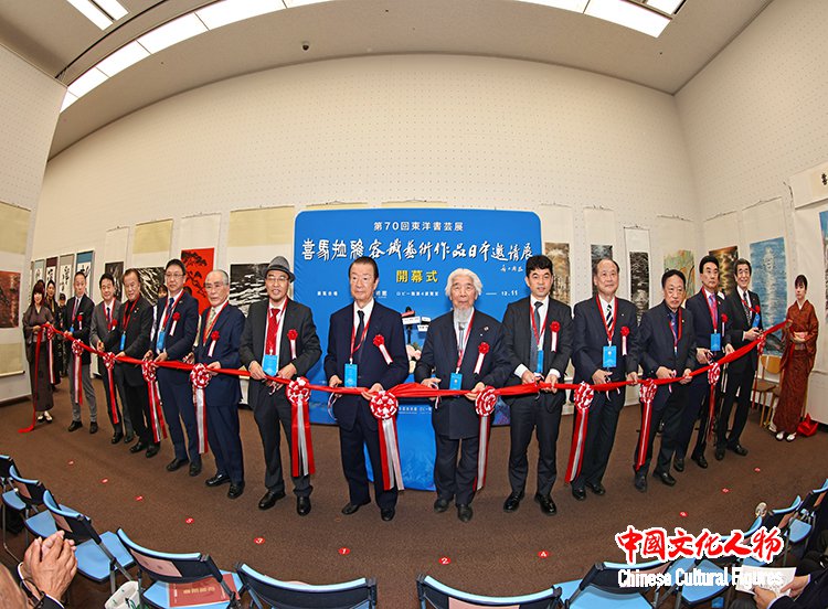 日本前内阁府特命担当大臣、日本众议院议员江崎铁磨,原日展常务理事、日本书艺院理事长、全日本书道联盟副理事长杭迫柏树,中国书法家协会理事、中国美术家协会理事、西泠印社理事容铁,中国文化人物杂志社社长王保胜,日展审査员、日本著名画家藤岛博文,创价学会副会长、富士美术馆事务局局长金子朗,东京中国文化中心主任罗玉泉,东洋书道艺术学会会长、理事长松本啓祐,全日本华侨华人联合会副会长、世界艺术家联盟主席、全日本华侨华人春晩总导演程波,在日中国企业协会会长王家驯,朝日新闻社社长助理、编辑委员会委员、中国局局长坂尻信义,东京都日中友好协会副会长永田哲二等中日两国嘉宾为展览剪彩