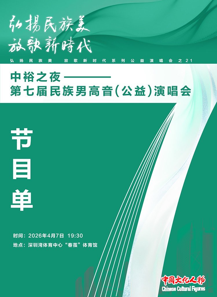 中国文化人物(记者 苏晴)弘扬民族美,放歌新时代。由中国-东盟艺术学院、中裕能源主办,深圳市文学艺术界联合会、深圳市音乐家协会、成都大学支持,中国-东盟艺术学院音乐与舞蹈学院承办主办的“中裕之夜——第七届民族男高音公益演唱会”将于4月7日19:30—23:00在深圳湾体育中心“春茧”体育馆举行。