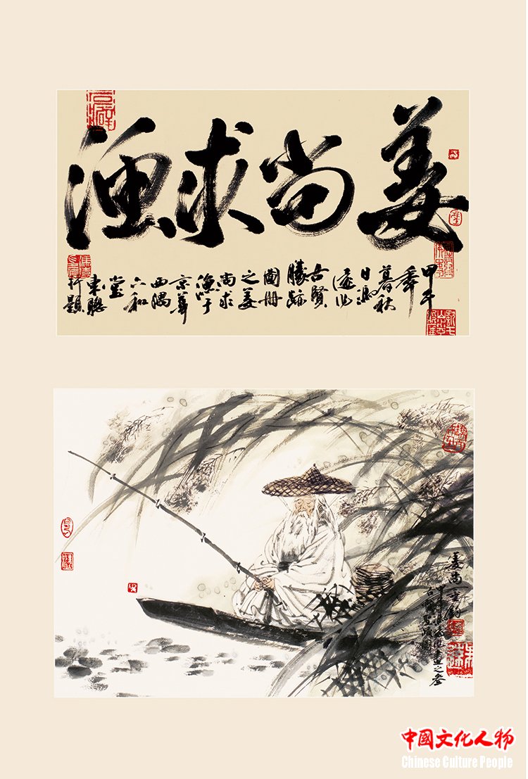 “Jiang Shang Seeking Fish” (58×82cm) by Feng Yuan
