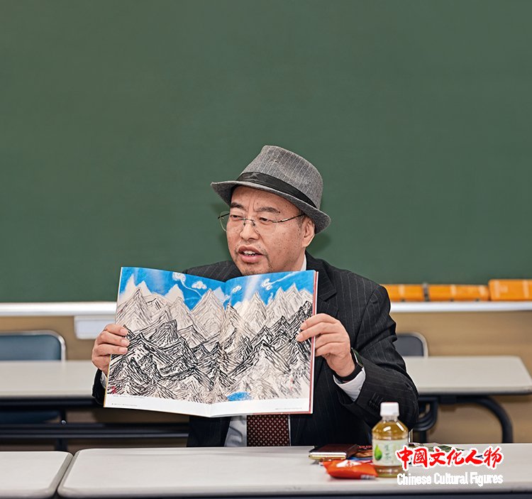 容铁在交流现场向师生们介绍自己的展览作品