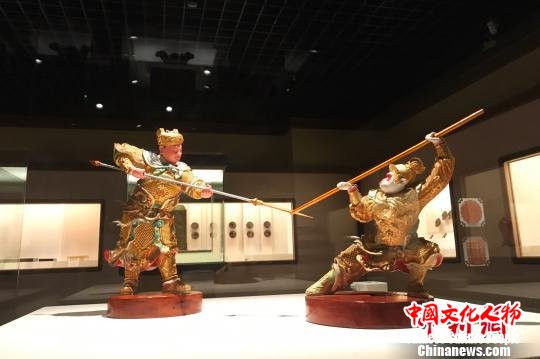 蔡文沛漆线雕孙悟空战杨戬。 王笈 摄