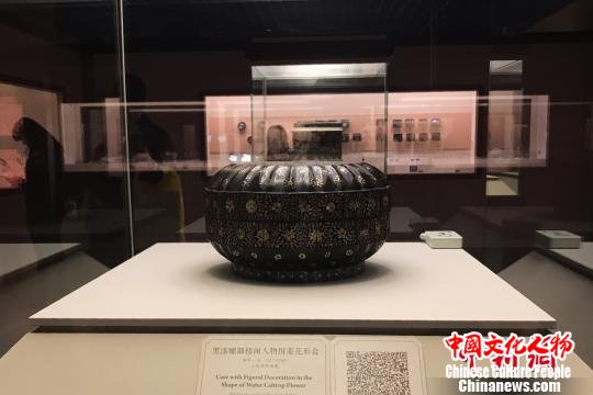 黑漆螺钿人物图圆盒。 王笈 摄