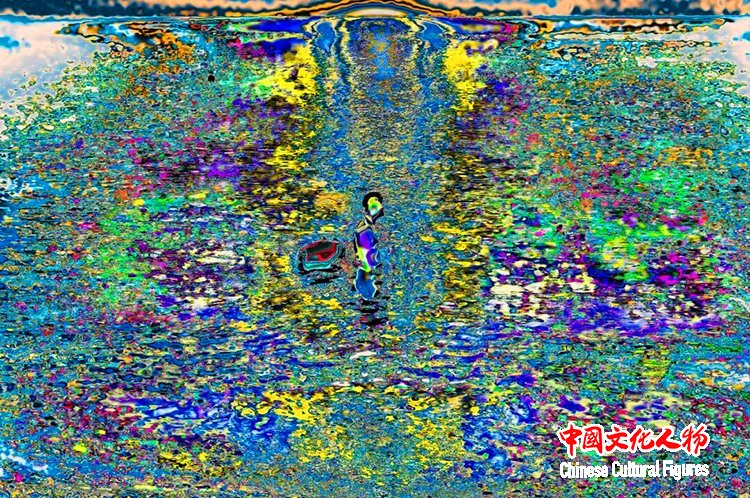 官宏滔进一步阐释,数码摄影的本质是数据捕捉,而人类习惯的颜色不过是人眼与大脑的主观处理结果,现实本身拥有无限种可能性,这与量子力学中的“观测者效应”不谋而合——观测行为本身会影响被观测对象,所谓“现实”,不过是主观视角下的定型认知。此次展出的《非观:天开之时》(2020)、《非观:最后的浸礼》(2023)、《非观:破译中50%》(2022)、《非观:最后的冬泳》(2023)等系列作品,完整呈现了他的创作脉络:从盘古开天的神话意象,到信息之海的个人感悟;从“山是水、水是山”的万物共生理念,到数字时代人类生存状态的叩问,每一件作品都融入了他跨越中西文化的生活体验,将抽象的哲学思考转化为可感知的视觉艺术。