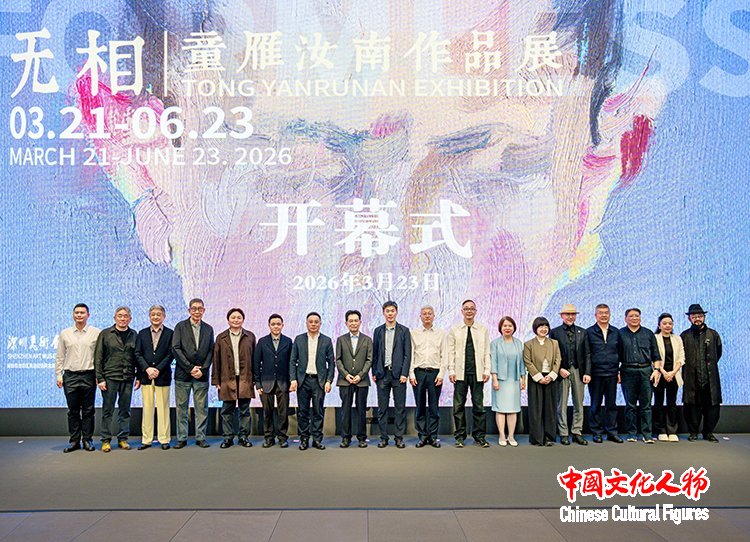 中国文化人物(记者 马将平)2026年3月23日,“无相——童雁汝南作品展”在深圳美术馆正式开幕。中共中央宣传部原秘书长官景辉,广东省文联专职副主席生继锋,深圳市文联主席刘文斌,深圳市委宣传部副部长、深圳市新闻出版局局长苏荣才,深圳市文化广电旅游体育局副局长施文丽,深圳市文联名誉主席董小明,广东省云浮市政府副秘书长简学豪,江西省九江市政协副主席王丰鹏等各级领导,中国美术家协会协副主席庞茂琨,中国美术家协会副主席李象群,中央美术学院院长林茂,中国艺术研究院研究员、中国油画学会原副主席兼秘书长张祖英,广州美术学院院长范勃,中国艺术研究院原副院长谭平,清华大学美术学院院长吴琼,复旦大学哲学学院党委书记袁新,景德镇陶瓷大学副校长张婧婧等国内艺术界领军人物,库里蒂巴国际双年展组委会主席路易斯·倍雷拉(Luiz Ernesto Meyer Pereira) ,库里蒂巴双年展艺术总监Adriana Almada,慕尼黑德国博物馆策展人DR NEUMANN,苏格兰国立美术馆馆长西蒙·格罗姆(Simon Groom),意大利Mazzoleni Gallery创始人Luigi Mazzoleni,日本艺术家盐田千春(Chiharu Shiota)等国外艺术界嘉宾600余人出席。开幕式由深圳美术馆馆长朱建军主持。